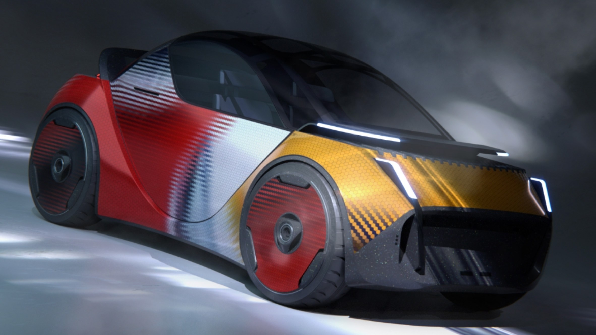 디자이너의 대표작은 특별히 설계된 차량과 함께 제시된 유쾌한 모빌리티 서비스이다.