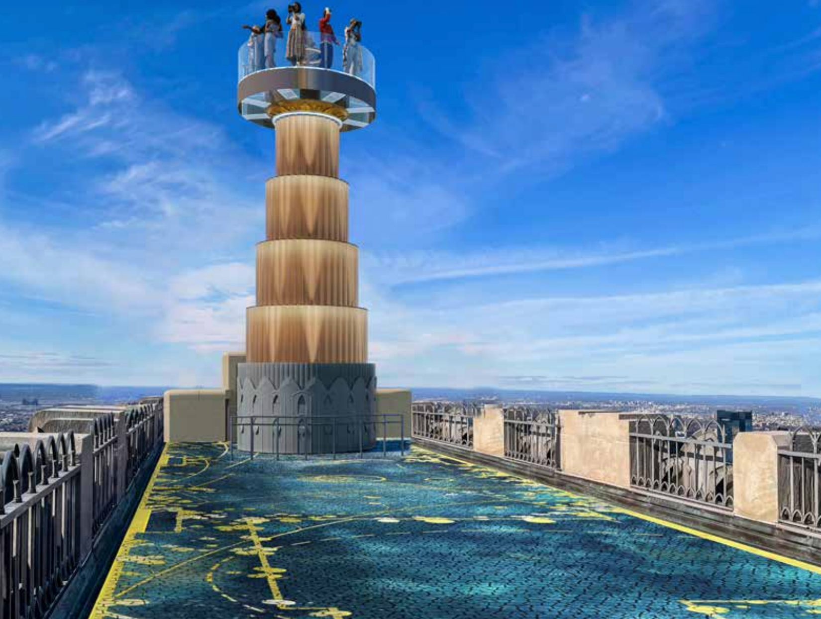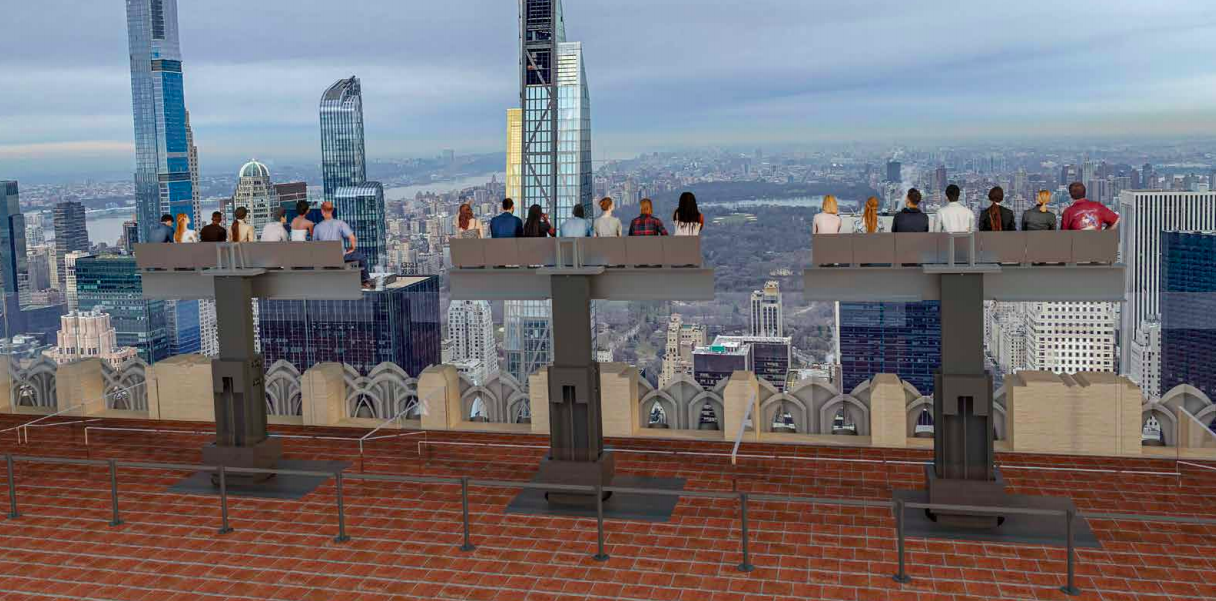 또한 역사적인 록펠러 센터에서 영감을 받은 새로운 모자이크 타일 바닥으로 구성되어 모던함을 더했다. 또한 건물의 유명한 옥상의 다른 부분도 일부 변경된다. 11명의 뉴욕 노동자가 강철 기둥 위에서 점심을 먹고 있는 유명한 1932년 사진에서 영감을 받아 ‘초고층 빌딩 꼭대기에서 점심 식사’라고 불리는 새로운 경험을 제공할 예정이다. 69층에서 실제 움직이는 기둥 위에 앉을 수 있으며, 안전장치를 착용하고 뉴욕 상공을 왔다 갔다 할 수 있다.