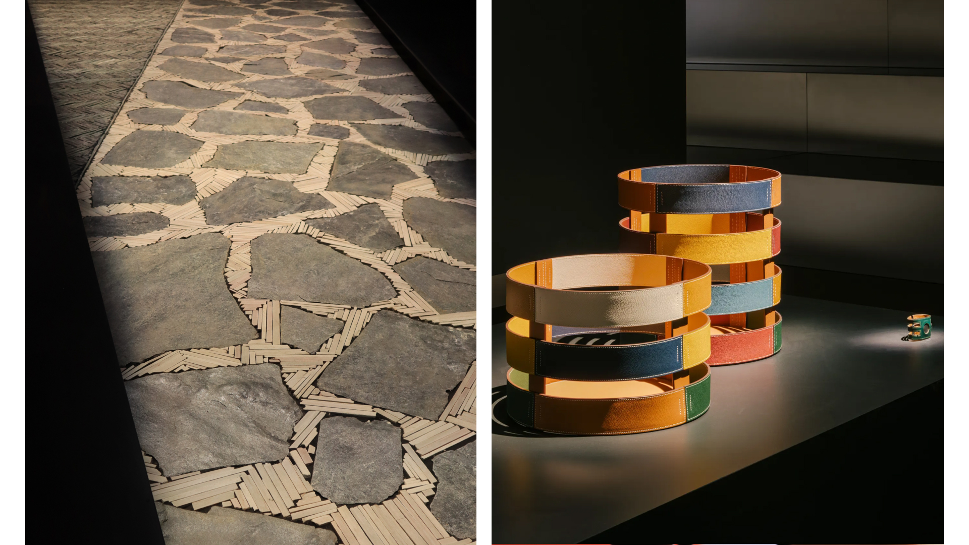 에르메스는 이번 디자인 위크에서 ‘대지(Ground, The Earth)’라는 테마로 새로운 홈 컬렉션을 선보였는데, 큰 규모의 전시를 그동안 선보인 모습과는 달리 올해에는 흙, 테라코타, 벽돌, 바위 등 소재를 바닥에 선보인 전시였다. 이런 자연 소재들을 위로 걸어 다니며 마치 유적지를 걷는듯한 느낌을 주는 전시였으며, 이를 통해 에르메스가 100년 전 처음으로 홈 컬렉션을 시작했다는 점을 다시 한번 강조했다. 전시 뒤편에는 21개의 신제품과 에르메스의 아카이브 제품을 함께 큐레이팅하여 선보였다. 가장 흥미로운 점은 아카이브 제품과 신제품의 영감이 의도된 점이 아니라 전시를 큐레이팅하면서 에르메스가 우연히 발견한 점에서 100년이 넘은 브랜드의 철학을 볼 수 있는 전시였다.