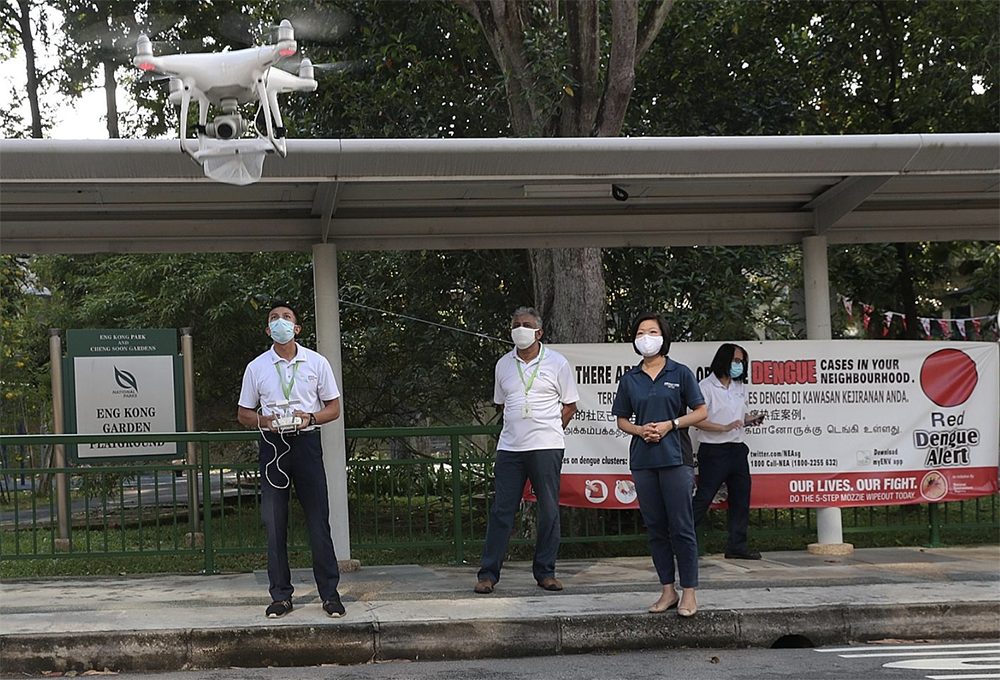 싱가포르에서는 드론을 모기 퇴치에도 활용한다. 모기는 연못이나 정원에 오랫동안 고여있는 물에서 유충으로 발생하며, 급격히 퍼지는데, 이를 막기 위해 드론이 모기 번식 상황을 모니터링하고, 살충제를 뿌리는 역할을 담당한다.