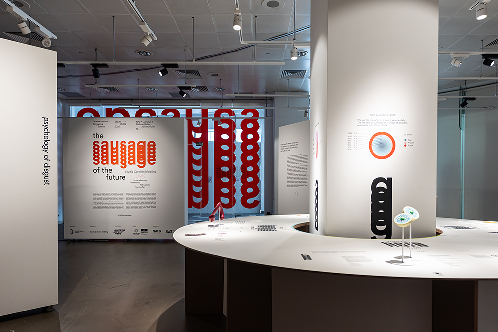 ’브라바사-부기스BRAS BASAH.BUGIS’ 지구의 ‘미래의 소시지, 싱가포르 편The Sausage of the Future_ Singapore Edition’은 미래형 소시지를 ‘스튜디오 캐로리엔 니에브링Studio Carolien Niebling’과 싱가포르의 정육 회사, 요리사의 협업 프로젝트다. 소시지로 ‘근 미래의 식량 안보 문제, 식료품 폐기물, 종 다양성, 보존제, 소비자 심리’등 가볍지 않은 주제를 풀어냈다.