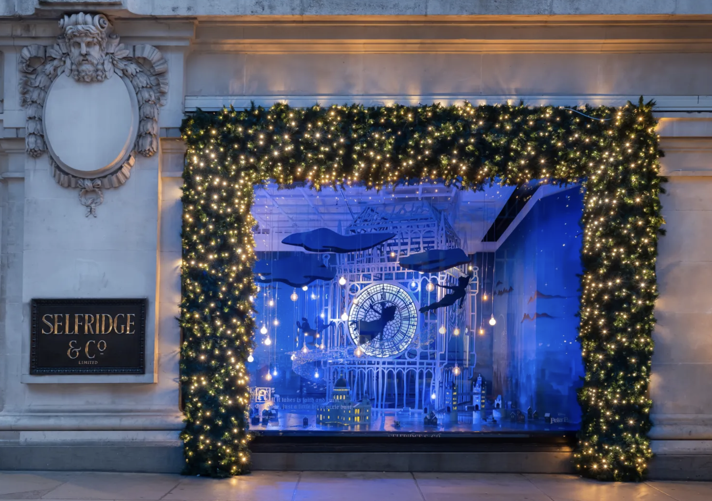 Selfridges의 크리스마스 윈도우는 이 전략을 대표하는 사례다. 매년 언론 보도를 일으킬 만큼 주목도가 높으며 2025년 테마 역시 약 20여 개의 쇼윈도를 통해 디즈니 클래식에서 영감을 받은 ‘마법의 크리스마스 세계'라는 일관된 스토리텔링으로 구성됐다. 디즈니의 상징적 이미지를 윈도우와 파사드 전체에 적용하고 윈도우 디스플레이를 디즈니 클래식 장면들에서 직접 영감을 얻은 구성했다. 또한 올해는 15분마다 한 번씩 펼쳐지는 디즈니풍의 광학적 라이트 쇼도 메인 파사드에서 이뤄지고 있다. 연간 2천만 명이 오가는 옥스퍼드 스트리트 특성상 쇼윈도는 단순한 매장 연출을 넘어 거리의 이미지를 형성하는 핵심 장치다. Selfridges가 데코레이션에 큰 규모로 투자하는 이유도 명확하다. 크리스마스 시즌 매출이 연 매출의 30% 이상을 차지하고 유입된 방문객은 주변 상권에도 직접적인 매출 상승을 만든다고 전한다. 또한 미디어와 SNS에서의 노출은 도시 전체의 인지도로 연결된다. 즉, Selfridges는 브랜드 홍보와 옥스퍼드 스트리트의 분위기 설정이라는 이중적인 역할을 수행하며 이 건물의 조명과 VM 스타일, 테마 톤은 거리 전체의 감정선을 결정해버린다.