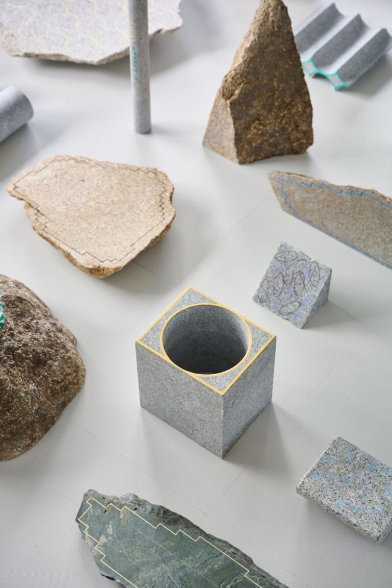 단재와 제품 사이—그 사이에 깃든 풍부한 가능성 이번 전시의 매력은, 석재의 무게감·질감과 디자이너의 부드럽고 리드미컬한 표현이 교차하면서 생기는 이질감과 조화를 관객이 직접 마주할 수 있다는 점이다. 단재의 불규칙한 측면은 그대로 둔 채, 그 위에 직선·곡선·기하학적 패턴이 가볍게 더해지며 전혀 새로운 오브제로 재탄생한다. 자연과 인공, 발견과 창작, 무게와 선명함 사이의 진동이 이 컬렉션의 중심을 이룬다. 또한 전시된 모든 작품은 단 하나뿐인 오브제다. 현장에서 구매가 가능하며, 작품은 전시 종료 후 배송된다.