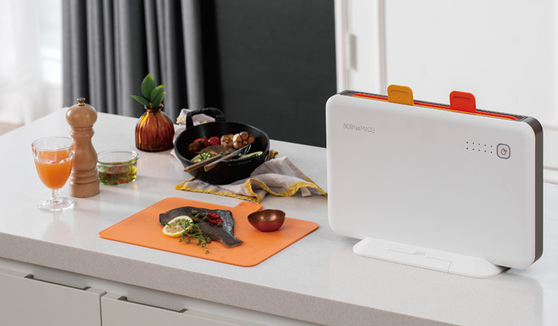 사용자 주방에 녹아드는 본앤메이드 도마 살균기와 착색을 보완한 원색 도마