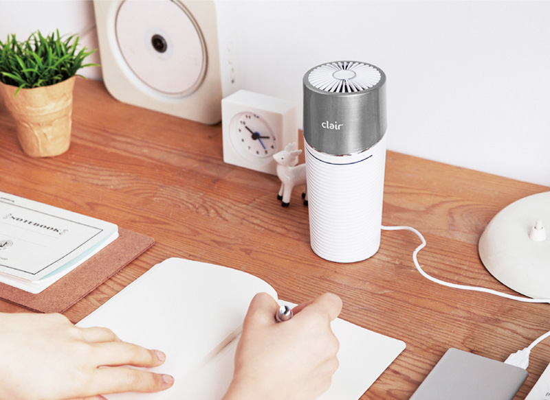 그렇게 사용자 중심의 디자인을 강화한 신제품 클레어B가 출시되었다. 기존 제품의 개선점을 말끔하게 해결한 클레어B의 달라진 외관에서 가장 눈에 띄는 부분은 깔끔하면서도 유용한 원기둥 형태의 디자인이다. 헤드 부분의 회전이 가능하여 원하는 방향으로 맑은 공기를 보낼 수 있다. 침실 머리맡, 사무공간, 카페, 차량 내부 등 어디서나 365일 24시간 좋은 공기를 마실 수 있는 획기적인 제품이 탄생했다. 텀블러를 닮은 신제품은 필터 교체와 청소도 간편해졌다. 원기둥의 형태적 특성상 파손 위험도 줄어들었다. 휴대용 제품이지만 공기청정기능도 훌륭하다. 정전기 원리를 활용한 ‘자석 필터’ e2f필터는 일산화탄소, 배기가스부터 초미세먼지까지 잡아준다. 거기에 이오나이저 기술이 결합되어 탈취 및 향균작용까지 가능하다.