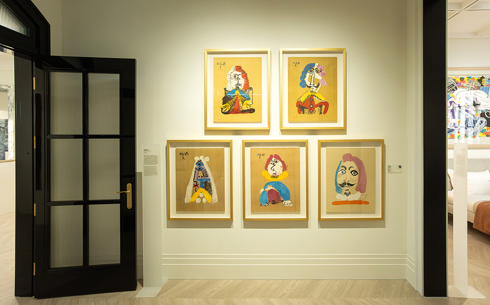 침실 공간으로 들어가기 전의 전이 공간에는 파블로 피카소의 <포트레 이마지네르(Portraits imaginaire) > 작품이 공간의 중심을 잡고 있다. ‘상상의 초상화’ 라는 제목의 이 작품은 1969년 피카소 말년에 그린 작품으로, 독특한 예술적 시각과 상상력을 통해 즉흥적으로 그린 초상화로 유명하다.