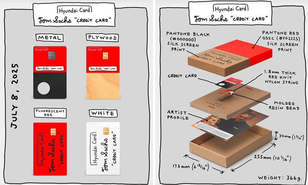비록 오늘날 모바일 앱을 통한 간편 결제가 보편화되었지만, 여전히 실물 카드는 일상에서 자주 사용되며, 그 자체로 하나의 존재감을 가진다. 이번 톰 삭스 크레딧 카드는 단순한 결제 도구를 넘어 일상 속에서 지니고 다니는 작은 예술 작품이자, 소장 가치가 있는 오브제로 자리 잡을 수 있음을 보여준다.