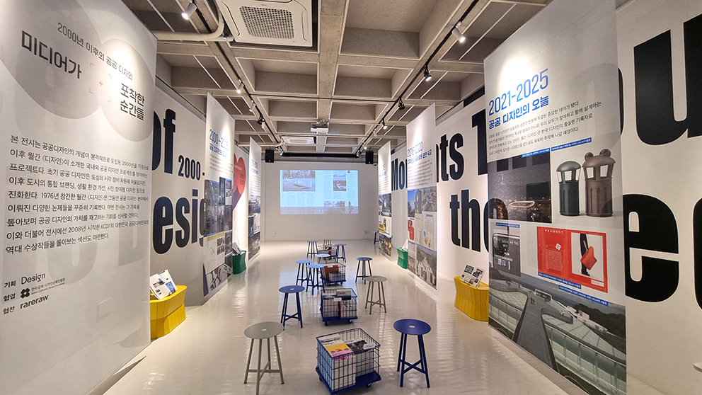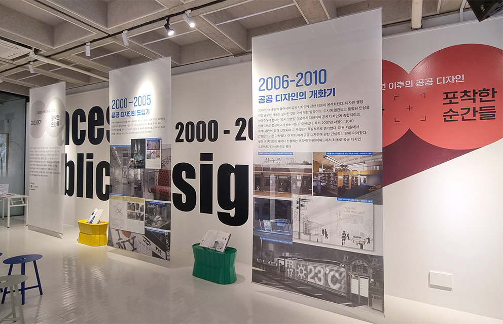 전시는 2020년부터 2025년 오늘까지 5년 단위로 나누어 공공디자인의 발전 방향을 보여준다. 2000년부터 시작된 도입기에는 도심의 시각 정비 차원에서 머무르는 한계가 있었지만 전시나 출판물을 매개로 공공디자인의 담론을 펼쳐 나갔고, 해외의 레퍼런스를 소개하거나 국내의 사례를 소개하는 방식으로 공공 디자인에 관한 인식을 넓혔다.