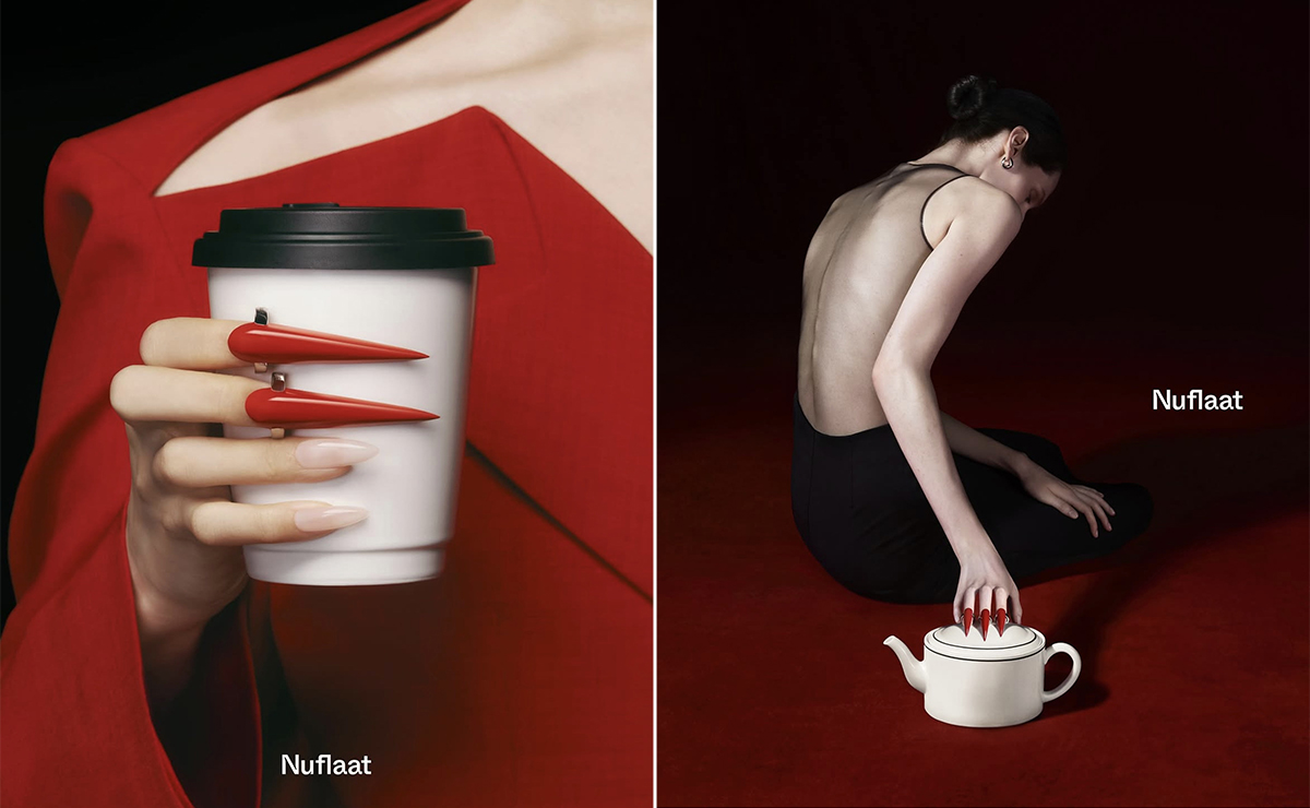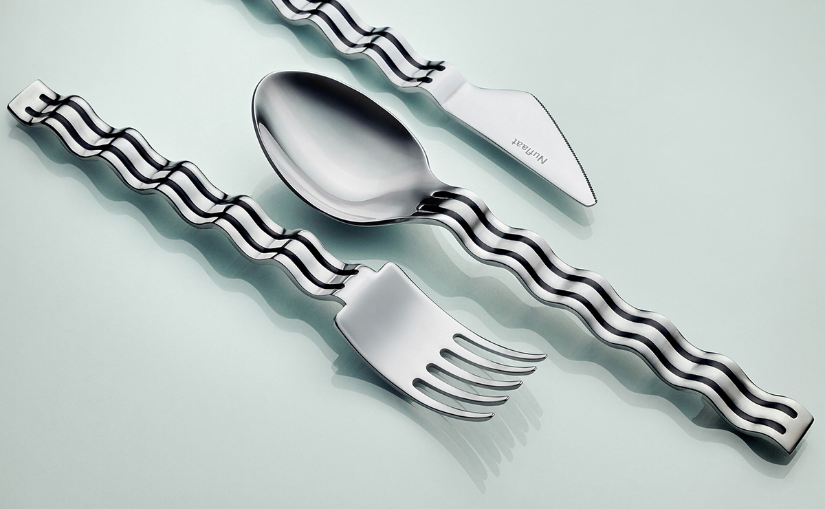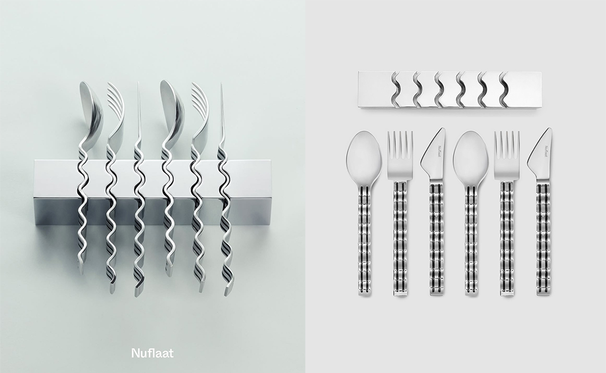 누플랏의 대표작인 ‘네일(Nail)’ 컬렉션은 미니멀한 실루엣 속에 대담한 포인트를 담았다. 포크나 스푼 손잡이 끝에 레드 컬러 네일 모티브를 결합하여, 사용자가 식기를 잡았을 때, 마치 사용자의 네일처럼 보이도록 설계함으로써 위트를 더한다. 이처럼 장난기 넘치는 디자인은 식사 행위를 하나의 퍼포먼스로 확장하여, 브랜드 특유의 실험성과 유머 감각을 보여주고 있다. 네일 컬러나 형태를 교체 가능한 모듈형 디자인으로 발전시켜, 사용자의 개성과 취향에 맞춘 커스터마이징 디자인으로 발전시켜도 좋을 것 같다.