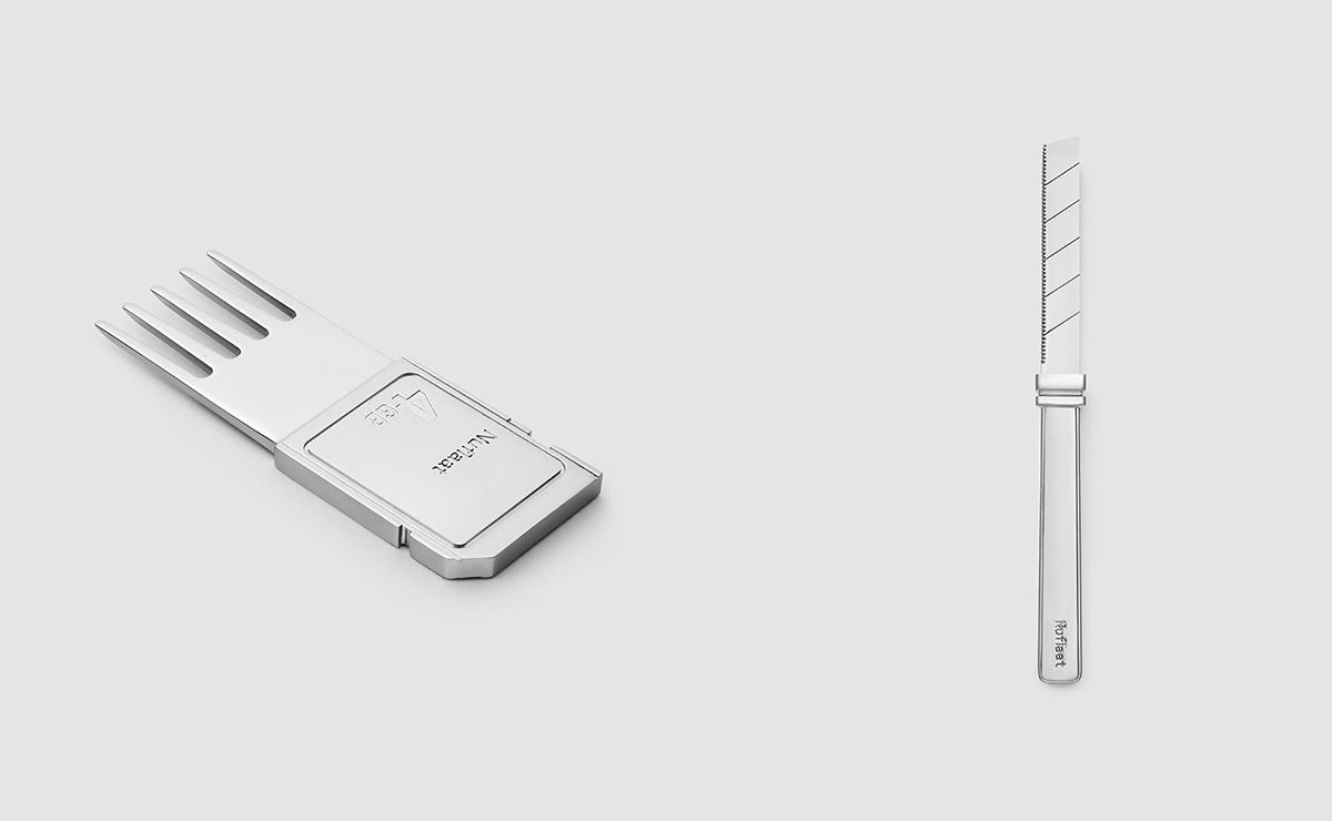 오피스(Office) 컬렉션은 사무용품에서 착안한 실험적인 시도다. SD카드, 연필, 커터칼, 신용카드 등 사무실 속 익숙한 아이템을 식기 형태로 재해석했다. 일상 속 도구가 가진 차가운 기능미를 유머러스하게 전환하여 재미를 더한다.