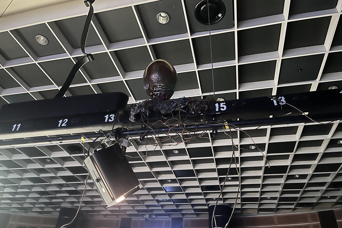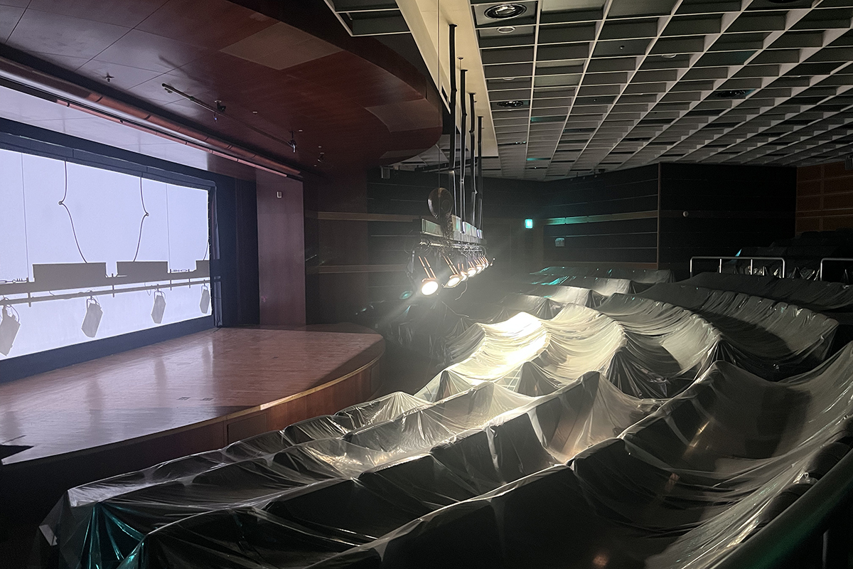 지하 1층에는 계단형 강의실이 있다. 현재 교육용 강의실로 사용하지만, 처음 개관할 때는 영화관이었다고 한다. 작가는 공간이 가진 이러한 역사를 활용하여 인간이 사라지고 침묵만 남은 빈 무대를 작품으로 표현했다. 극장의 빈 객석은 비닐을 씌우고 먼지가 가득하다. 무대를 비추는 조명은 아래로 내려와 있고, 조명 지지대 위에는 오르네르의 새 둥지가 놓여 있다.