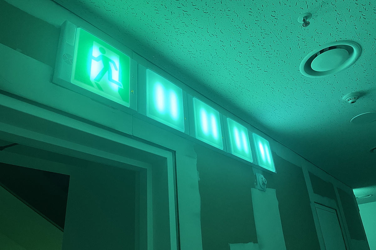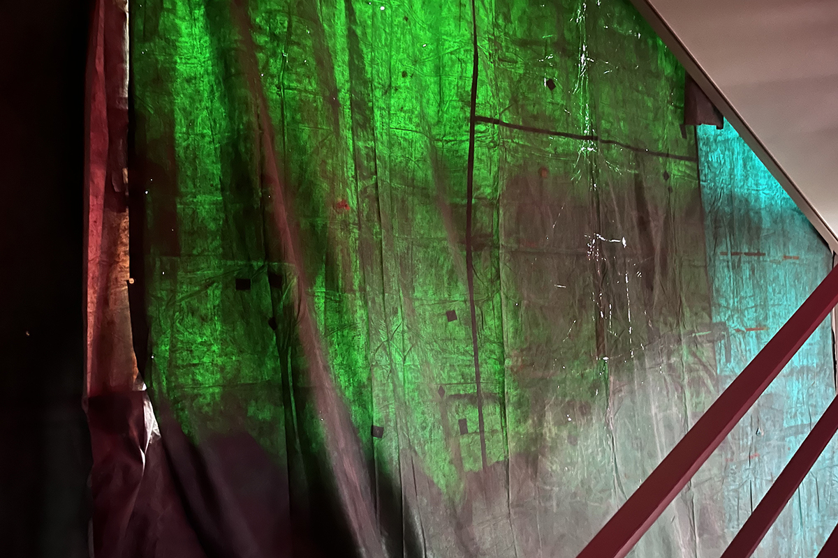 각 층별로 다른 색상의 조명을 사용하였는데, 지하 1층은 초록빛의 공간으로 연출되었다. 위층으로 올라가는 계단에는 낡은 천으로 유리창을 모두 가려서, 마치 세상의 종말처럼 좀비가 나올 것 같은 분위기를 연상시킨다.