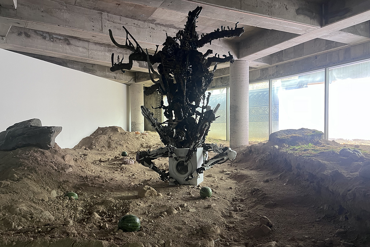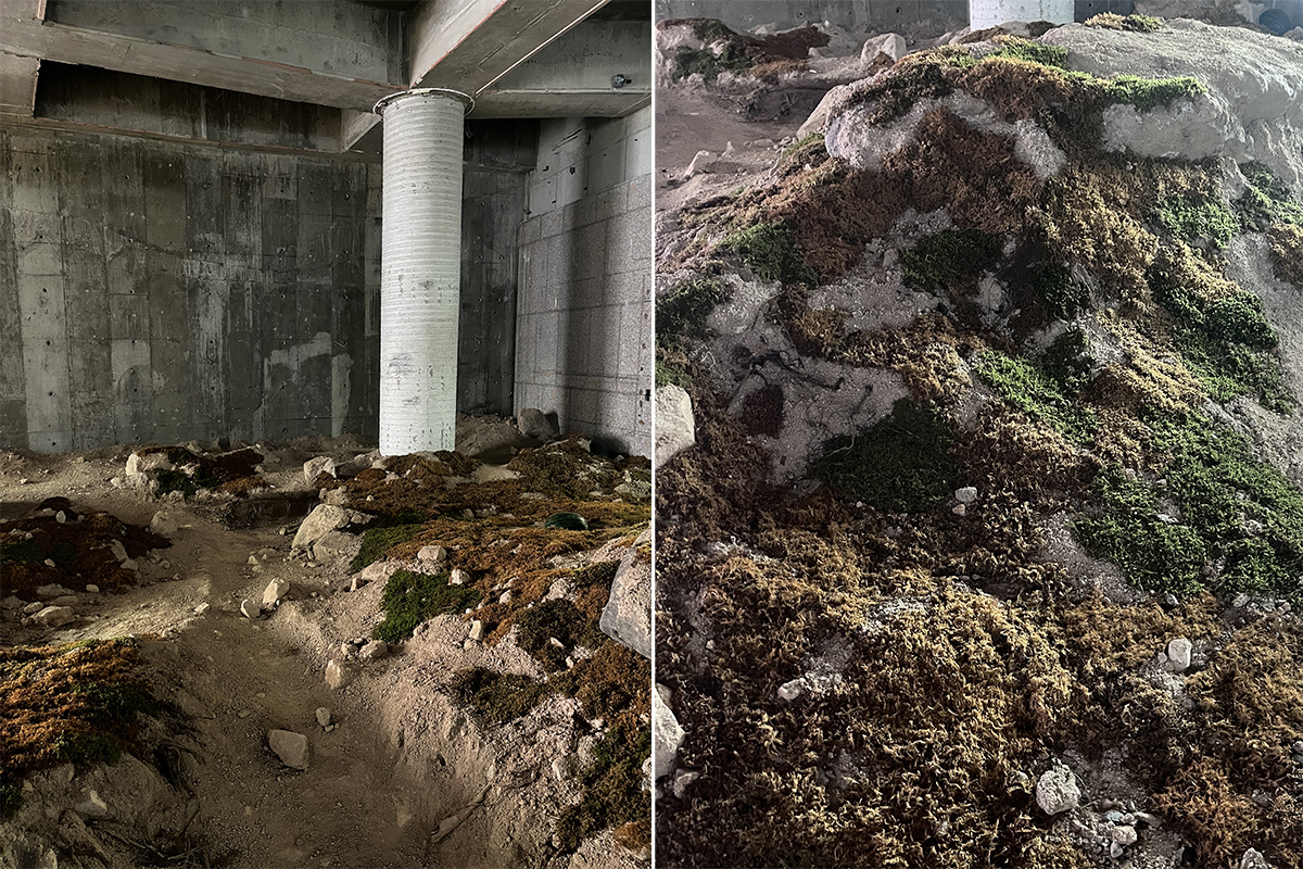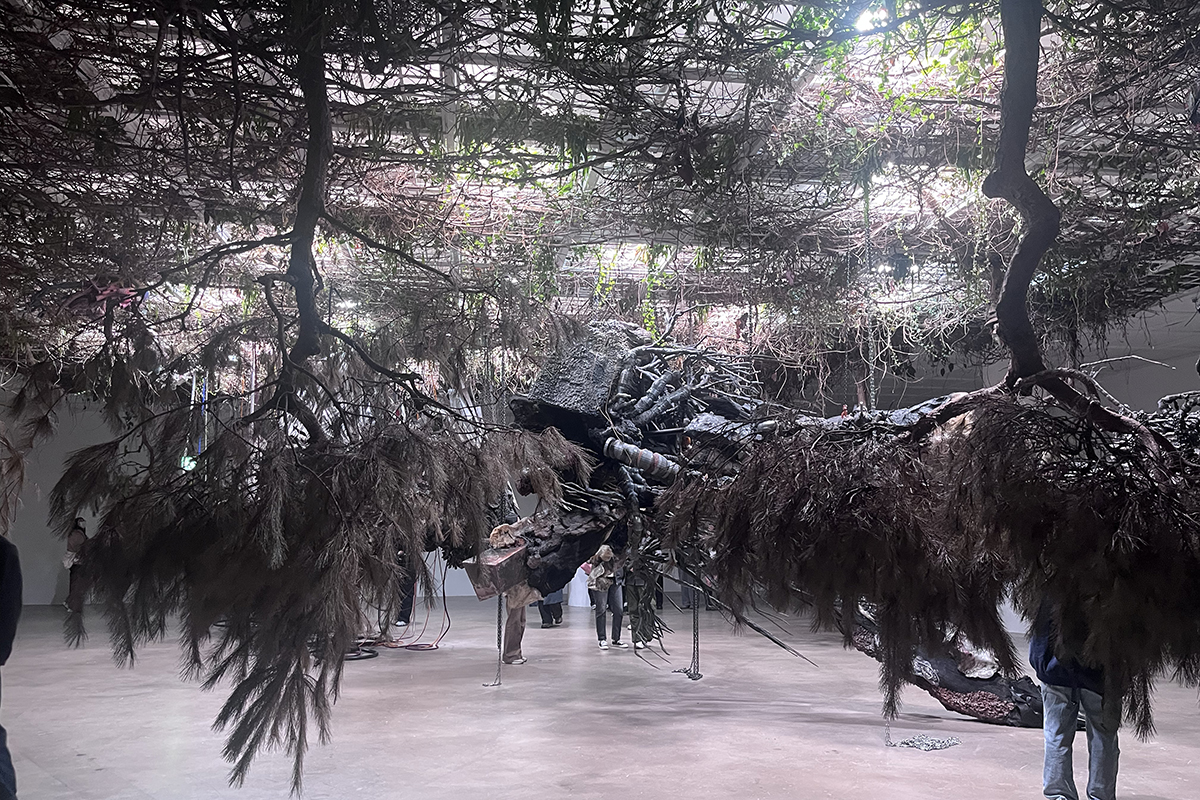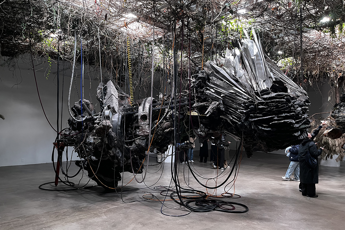 좁은 입구를 통해 전시장에 들어서면 거대한 무생물이 전시되어 있다. 거꾸로 자라나는 나무와 형체를 알 수 없는 생명체와 비 생명체들이 뒤얽혀 기생하는 것처럼 보인다. 금속, 콘크리트, 플라스틱, 흙, 유리, 수지, 소금, 나무껍질, 자동차 부품 등 유기적, 무기적 재료를 활용한 복합체로 인간과 기계의 노동 흔적이 내재되어 있다. 이곳에도 오르네르 새 둥지가 매달려 있다. 폐허 속에서도 변종이 나타나고, 생명력을 유지하고 있는 것 같다.