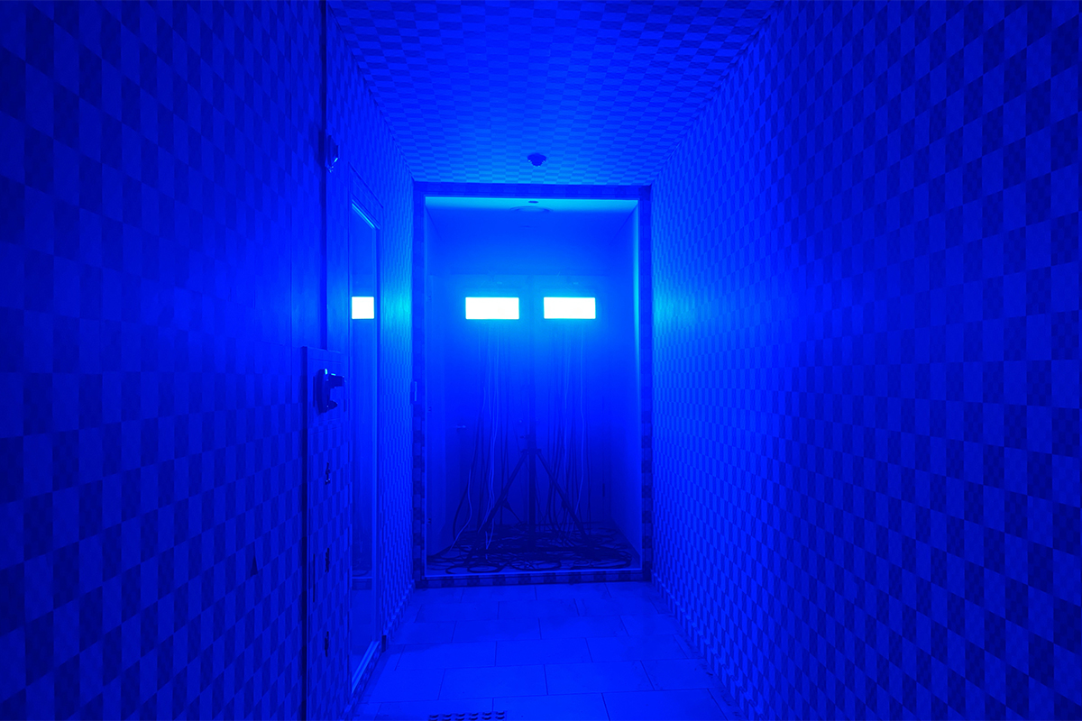 마지막 전시 공간인 3층으로 올라가면 파란 조명으로 채운 공간에서 더운 열기가 느껴진다. 2층과 같이 격자무늬의 프레임이 있는 공간이지만, 안으로 들어갈 수 없고 유리창 밖에서 내부를 볼 수 있다. 넓은 전시 공간 내부에는 타오르는 불과 그 옆에 돌이 놓여 있다. 이 공간은 마치 인간 문명이 모두 사라진 뒤에도 여전히 남아 있을 것 같은 원초적인 요소인 불과 돌을 상징하는 듯하다. 작가가 지속적으로 탐구해 온 ‘멸종 이후의 세계’와 ‘남겨진 흔적들’을 의미한다.