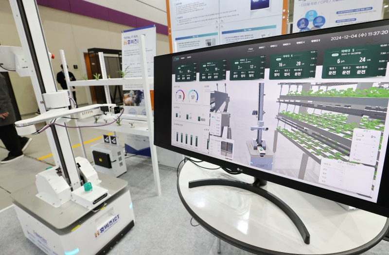 과학기술정보통신부는 올해 'XaaS 선도 프로젝트' 사업에 본격 착수한다고 22일 밝혔다. 사진은 기사와 직접 관련이 없으며 지난해 12월 열린 대한민국 소프트웨어 대전 '소프트웨이브 2024'의 한 부스에서 식물 생육환경 데이터 수집 로봇을 시연하고 있는 모습.(사진=저작권자(c) 연합뉴스, 무단 전재-재배포 금지)