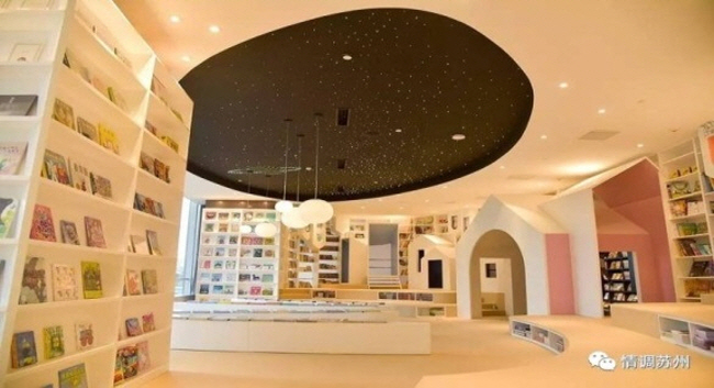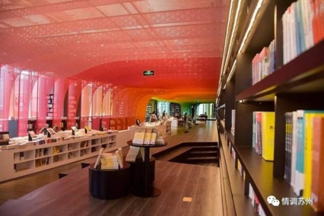4가지 섹션으로 나눈다. 이 중 ‘무지개 골짜기’는 가장 넓은 독서 공간이자 가장 눈에 띄는 공간으로, 중국의 대표적인 정원 건축 중 하나인 ‘쑤저우원림(苏州园林)’의 구불구불한 오솔길을