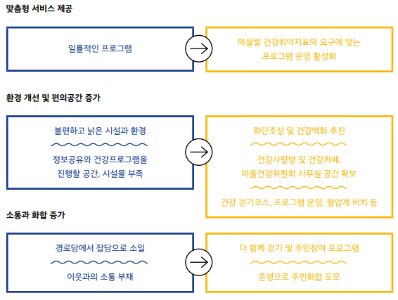 보건의료 서비스가 무엇인지 파악하고 주민들이 자기 주도적으로 건강한 생활을 지켜나갈 수 있도록