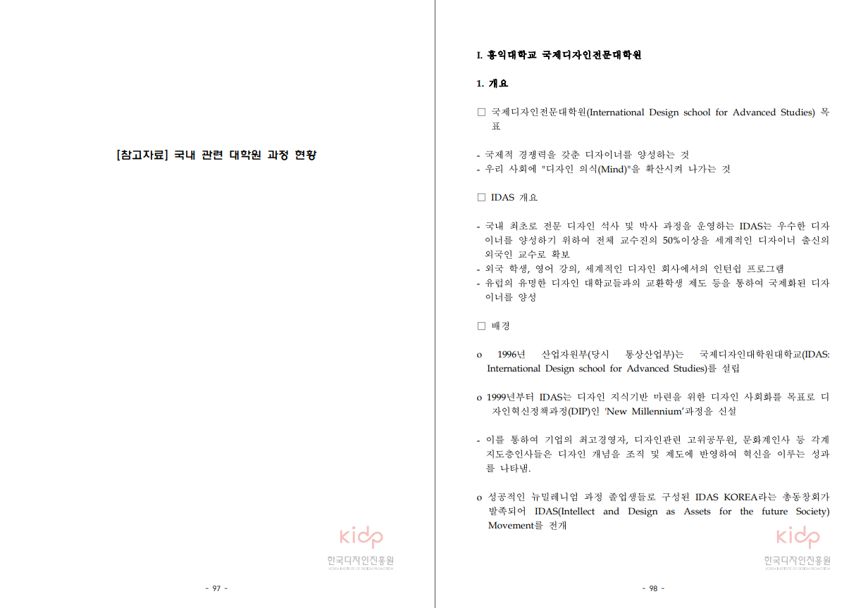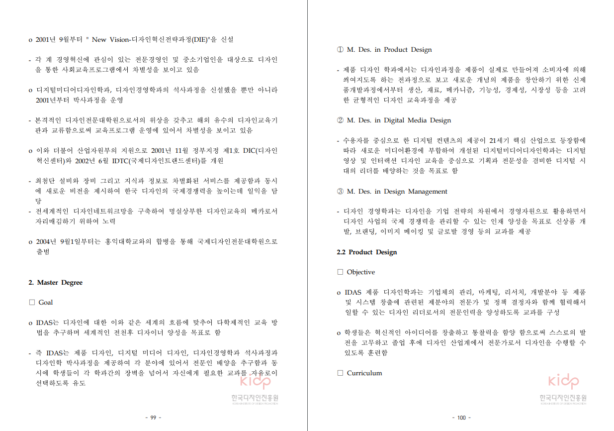 - 디자인분야의 융합교육을 수행하고 있는 국내외 대학원 과정에 대한 검토를수행