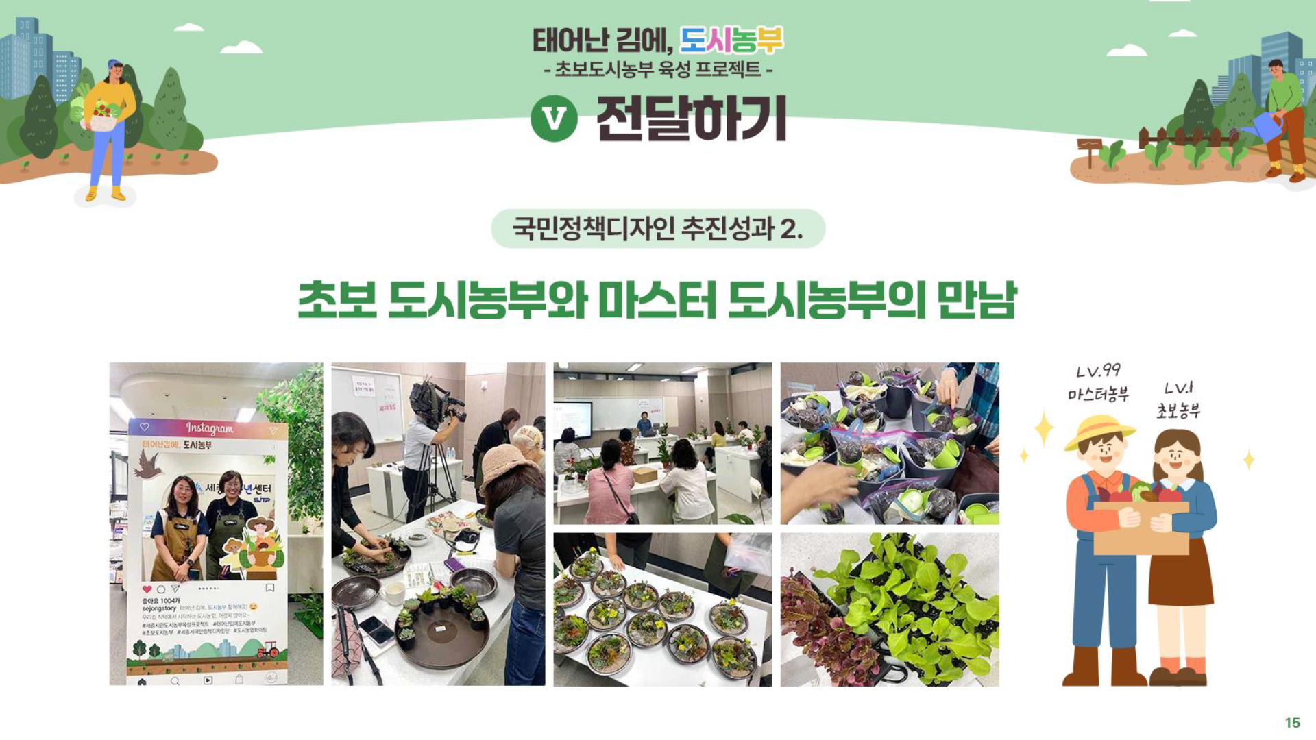 향후 자연스럽게 농업기술센터로 유입되어 마스터 도시농부로 거듭나도록 하였습니다.