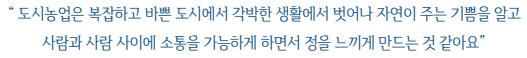 유지할 수 있게 합니다. 이것이 현대사회에 도시농업이 필요한 이유이기도 합니다.