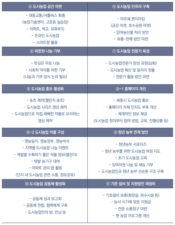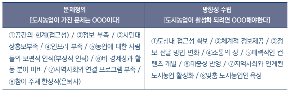 · 현재 도시농업 단계에 존재하는 문제점을 도출하였습니다.