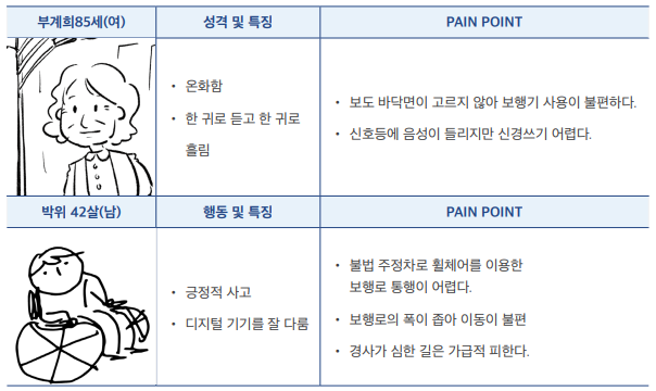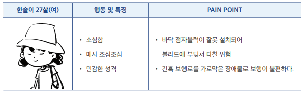 ㅇ 교통약자 시각에서 심도 있는 분석을 위해 가상의 사용자 3명 선정