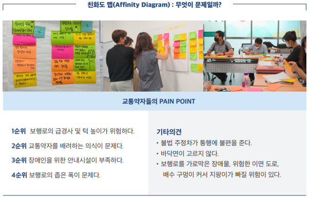 ㅇ 가상의 사용자 중심으로 통해 도출된 내용을 디자인단 구성원과 자유롭게 공유하고 친화도 맵을 통해