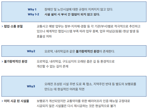 여전히 시설물에 대한 불편함이 있는 근본적인 원인 파악을 위해 5Why 분석* 실시