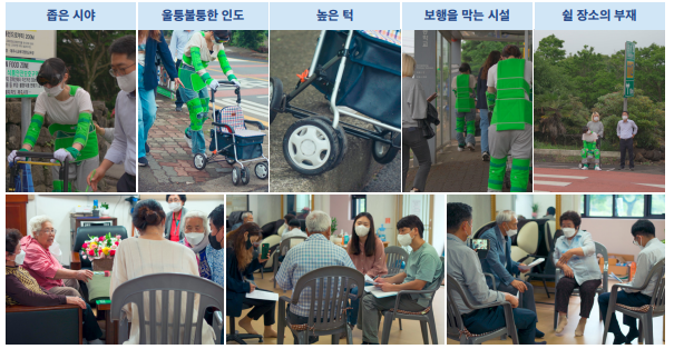 ㅇ 정책수요자의 감정과 느낌을 공감하기 위해 노인 체험복 착용 후 경로당을 찾아오기까지 과정에 대한