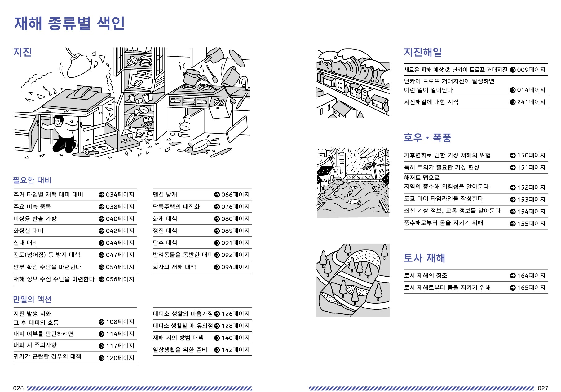 이번 개정판은 기후 변화와 사회 구조의 변화를 반영해, 지진과 풍수해뿐 아니라 감염병, 대규모 사고, 테러 등 복합 재난 상황에 대한 최신 정보를 포함하고 있으며, 누구나 실생활에서 방재를 실천할 수 있도록 구성되었다.