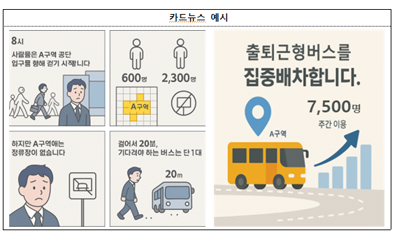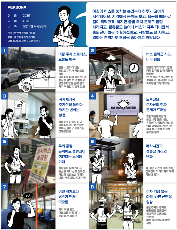 - 노후산단의 교통문제 인식부터 대중교통 전환까지, 근로자의 체감 변화 과정을 스토리보드로 시각화