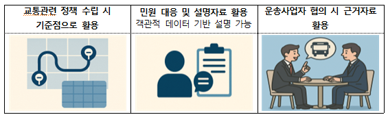 - 객관적인 분석자료를 기반으로 국민이 실질적으로 체감할 수 있는 교통 문제 해결 및 정책 설계를 통해 정책 실효성 및 타당성 확보