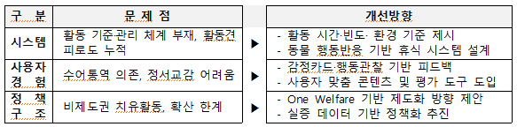 - 실증 결과는 지자체 중심 공공치유사업과의 연계 근거로 활용 가능