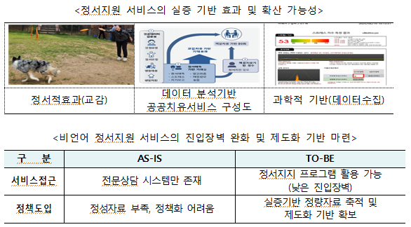 ☞ 정서 돌봄의 사각지대를 메우기 위해 동물복지 기반의 정책 설계·실증 필요