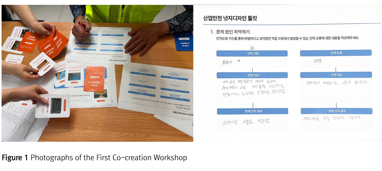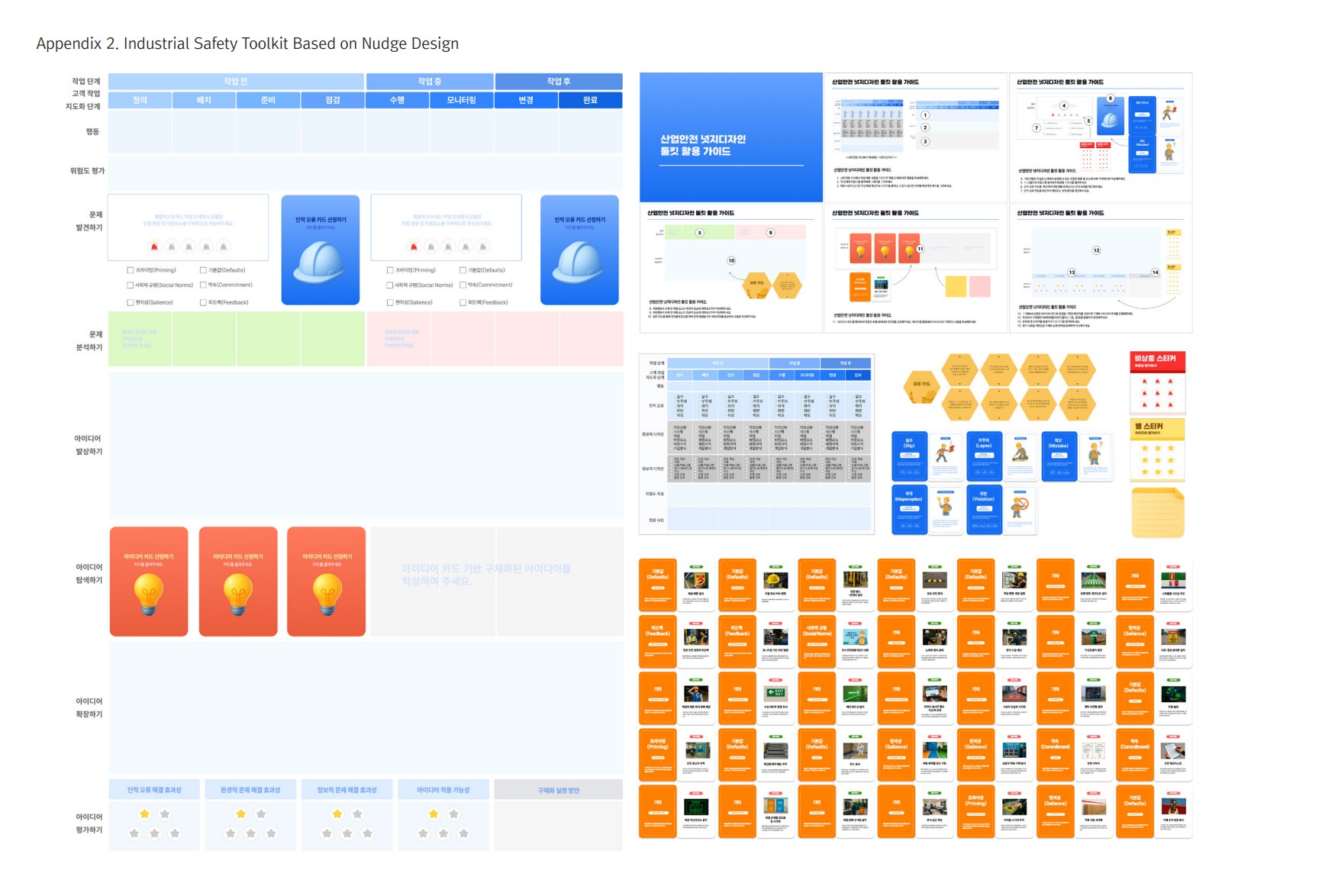3차에 걸친 코크리에이션 워크숍을 통해 산업 현장 근로자가 현장의 안전 문제를 스스로 진단하고, 넛지 이론에 기반한 개입 방안을 창의적으로 도출할 수 있는 툴킷의 최종 디자인을