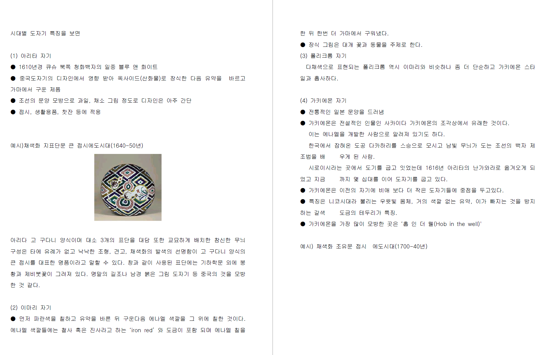 (2) 조선시대 도자기에 대하여 조사한 결과