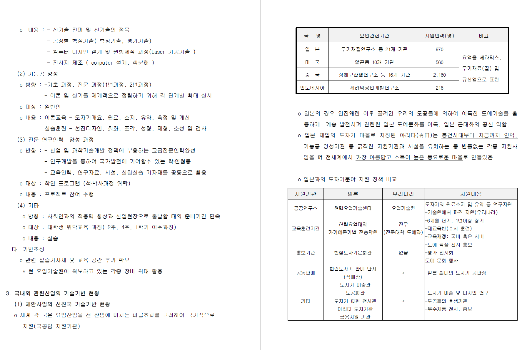 - o 도자기의 디자인 기반구축과 전략적 실행방안을 체게적으로 육성 국제 경쟁력 강화를 유도