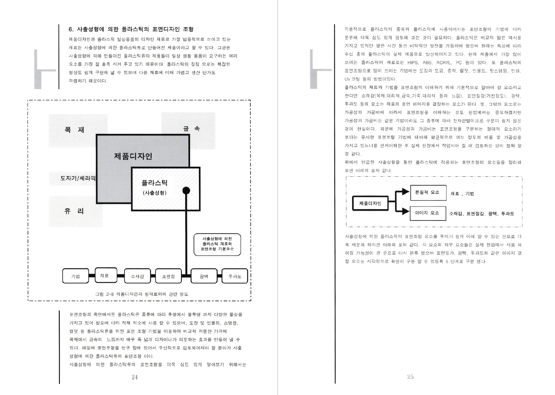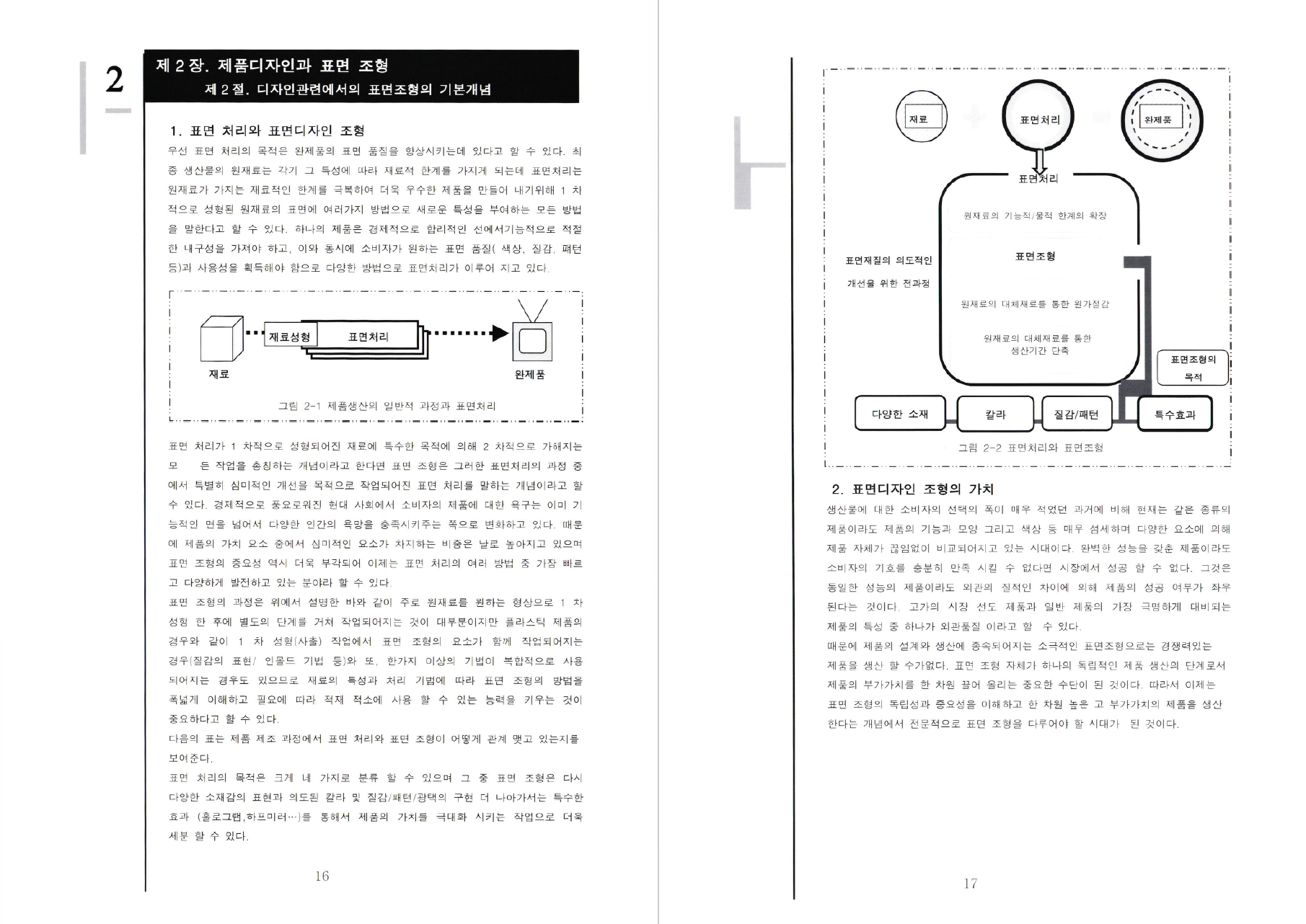 제2장. 제품디자인과 표면 조형1절.디자인 관점에서의 표면조형의 기본개념1. 표면처리와 표면조형디자인2. 표면디자인조형의 가치3. 표면디자인조형의 목적4. 표면디자인 조형의 재료와 성형기법5. 표면면디자인 조형의 기법6. 사출성형에 의한 플라스틱의 표면디자인 조형