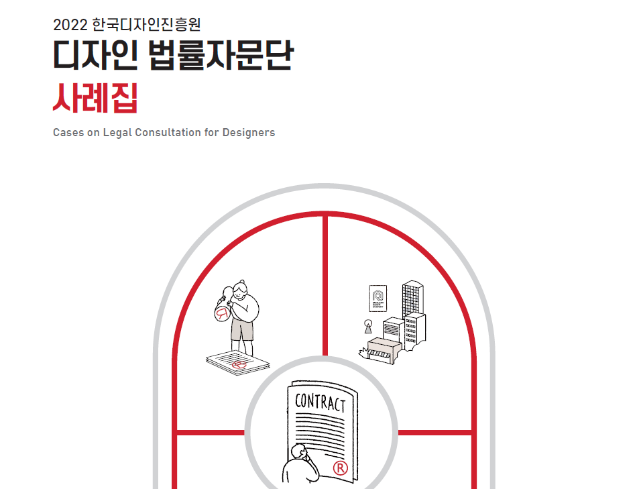 2024 디자인 법률자문단 사례집 | 한국디자인진흥원 Cases on Legal Consultation for Designers 목차 ▶디자인 권리 보호 제도 소개 - 디자인법률자문단, 디자인분쟁조정위원회, 디자인공지증명, 디자인표준계약서, 디자이너 경력관리 ▶ 유형별 디자인 법률 자문 사례 ▶ 사례 찾아보기 디자인법률자문단 디자인법률자문단은 디자인 관련 거래 과정에서 발생하는 불공정 거래 및 지식재산권 분쟁 등에 대한 법률 상담·자문 서비스입니다. 변호사, 변리사 등 각계 전문가로 구성된 법률자...