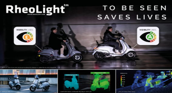 RheoLight의 주요 장점은 자율주행차용 LiDAR, ADAS(첨단 운전자 지원 시스템), 컴퓨터 비전 및 사람의 눈에 대해 뛰어난 가시성을 제공한다는 점이다. 이는 교통안전을 크게 향상해 긴급 상황에서 반응 시간을 줄이고 전기차와 자율주행차의 안전한 운행을 지원한다. 다양한 색상 및 디자인 구현의 자유를 제공해, 미적 매력과 기능적 안전성을 동시에 갖춘 동적 색상 표현이 가능하다. 모든 산업 분야에서 적용할 수 있는 범용 플랫폼 기술로써, 산업용 코팅, 화장품, 가구, 문구류 등 다양한 제품에 적용할 수 있다. 기존 산업 생산 및 적용 공정과 호환되며 수성 및 솔벤트 기반 분산액과 플라스틱용 단일 농축액 형태로 손쉽게 조제 및 적용이 가능하다. 이 회사는 CES 2024 혁신상 및 여러 자전거 안전 관련 상을 받는 등 기술력과 안전성에 대한 국제적 인정도 받았다.