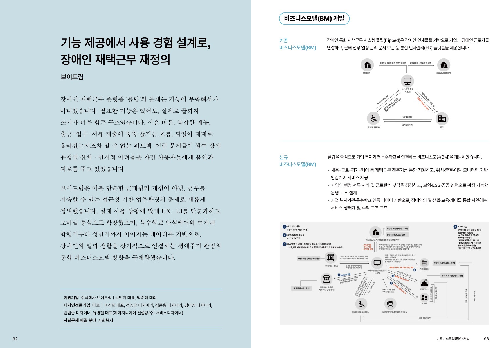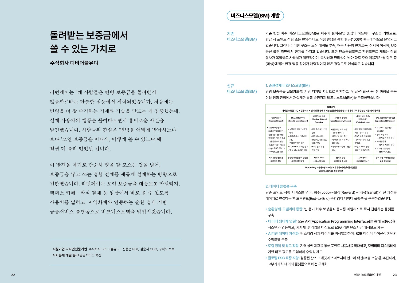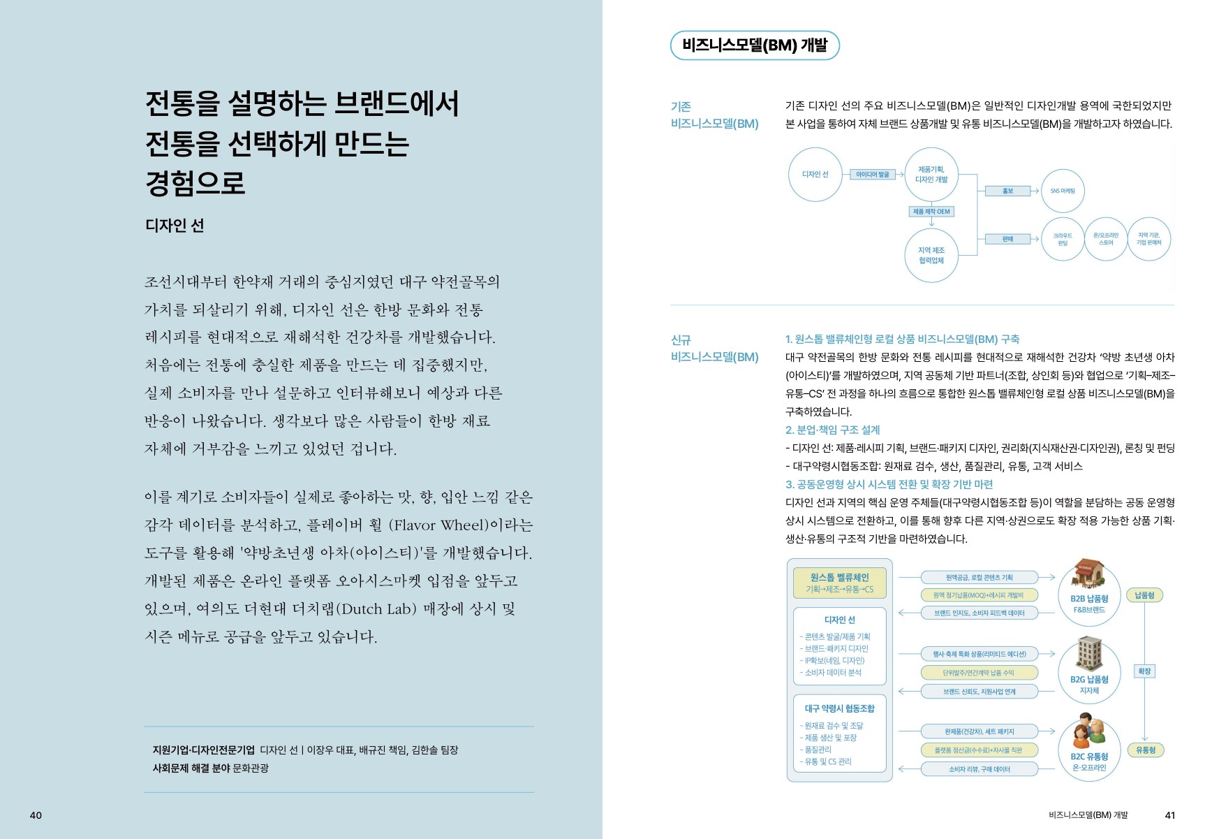 보고서에는 기업이 처음 마주한 문제를 다시 정의하고, 사용자 경험과 시장 맥락을 분석하며, 실행 가능한 콘셉트와 프로토타입, 사업모델로 구체화해 가는 여정이 담겨 있다. 자원순환, 지역경제, 이동, 안전, 건강, 공공서비스 등 지속가능성과 맞닿은 여러 분야에서 디자인이 실제 변화와 사업 가능성으로 이어지는 모습을 구체적인 사례를 통해 보여준다.