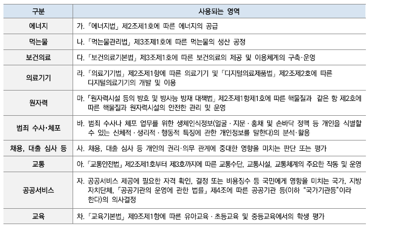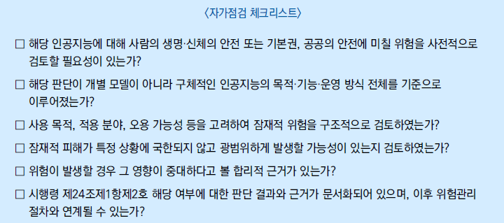 - 사람의 생명이나 신체 안전, 기본권, 공공 안전에 중대한 영향을 미칠 가능성