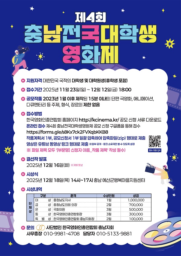 - [온라인 접수] 제4회 충남전국대학생영화제 공모 신청 구글폼을 통해 접수