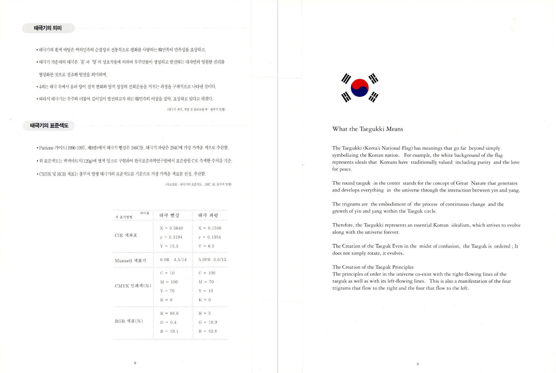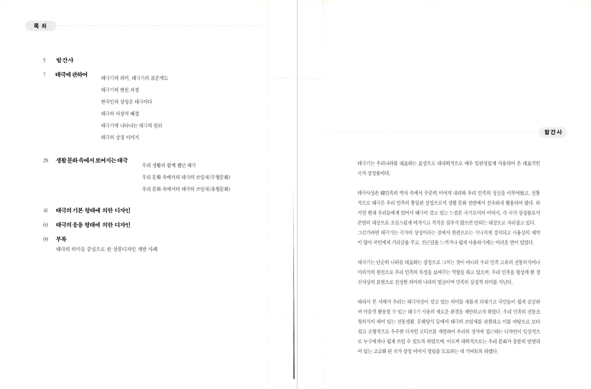따라서 본 서에서 우리는 태극사상이 갖고 있는 의미를 새롭게 되새기고 국민들이 쉽게 공감하며 마음껏 활용할 수 있는 태극기 사용의 새로운 환경을 제안하고자 하였다. 우리 민족의 전통조형의식이 배어 있는 전통생활, 문화양식 등에서 태극의 쓰임새를 관찰하고 이를 바탕으로 보다 쉽고 조형적으로 우수한 디자인 모티브를 개발하여 우리의 정서에 접근하는 디자인이 일상적으로 누구에게나 쉽게 쓰일 수 있도록 하였으며, 이로써 대외적으로는 우리 문화가 충분히 반영되어 있는 고급화 된 국가 상징 이미지 정립을 도모하는 데 기여토록 하였다.