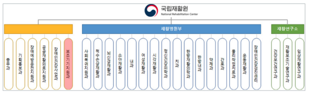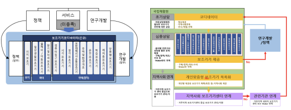 연구개발(보조기기 열린 플랫폼), 서비스(재활병원부), 정책(중앙 보조기기 센터, 중앙장애인 보건의료센터) 등의