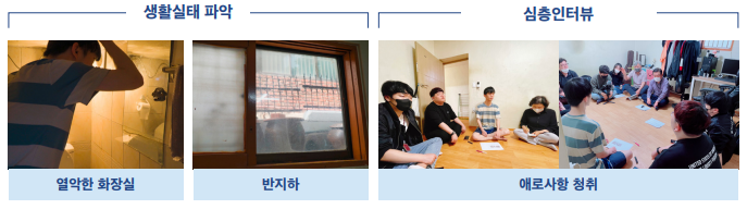 ㅇ 자립준비청년 생활주택을 방문하여 주거환경과 생활실태를 파악하고 심층 인터뷰를 통해 자립준비청년의