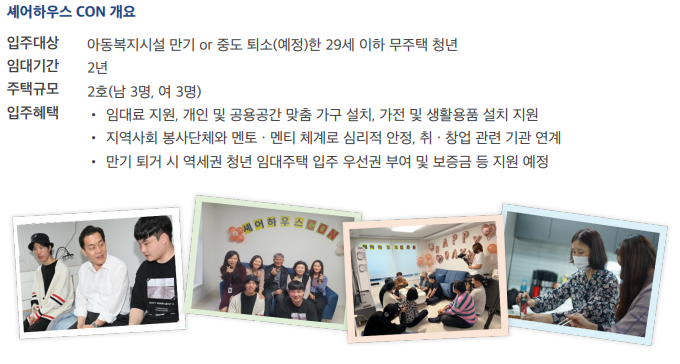 현실입니다. 셰어하우스 CON 지원 대상자 입주기준을 확대 (아동복지시설 퇴소 5년 이내 자립준비청년 → 아동복지