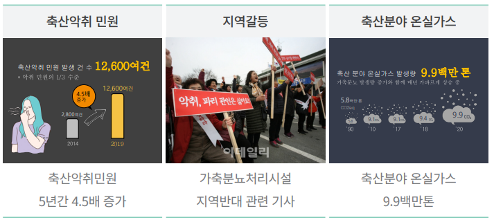 ㅇ 축산업의 성장과 함께 가축분뇨 및 악취 등 축산환경 악화로 인한 축산업에 대한