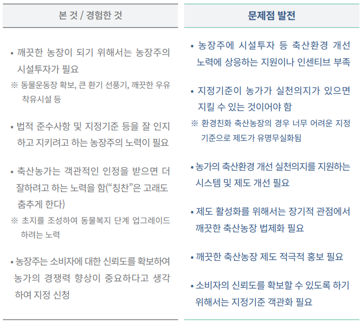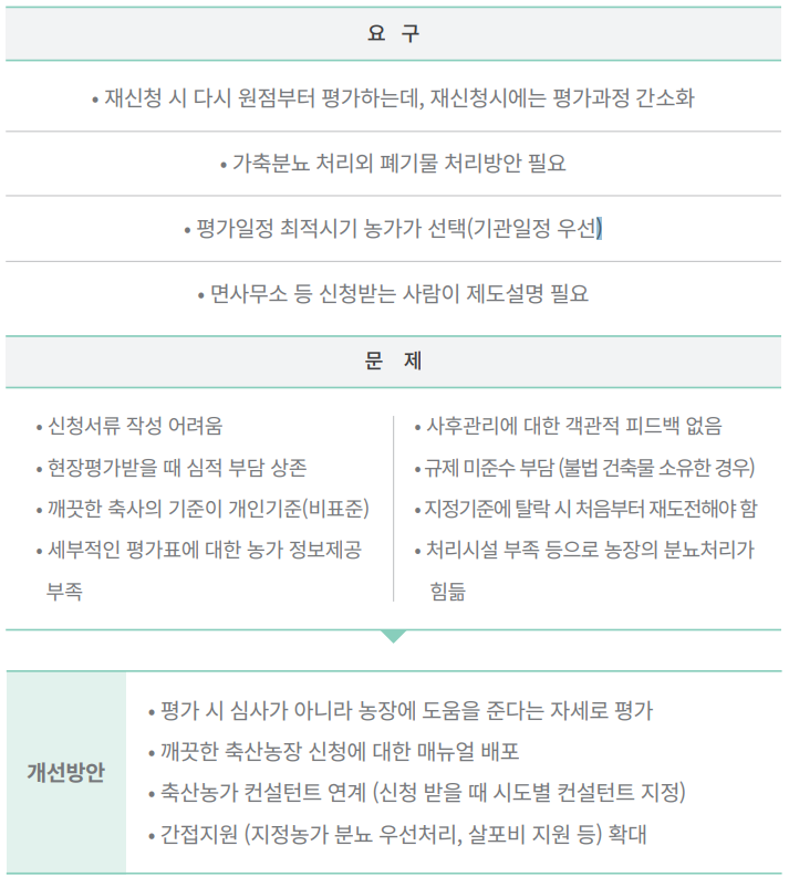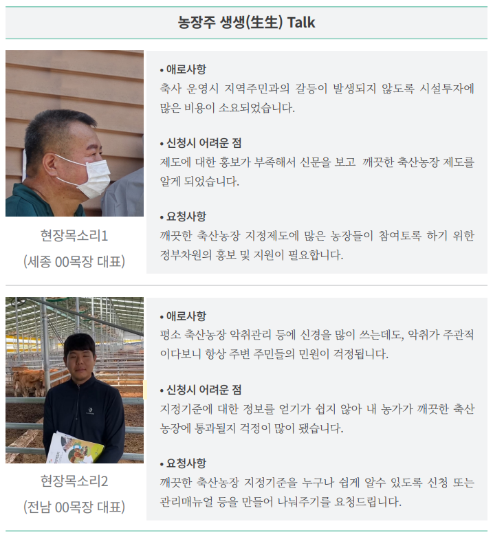 상세히 공유하여 축산환경 및 “깨끗한 축산농장 지정” 제도의 문제점을 좀 더 발전시켰습니다.
