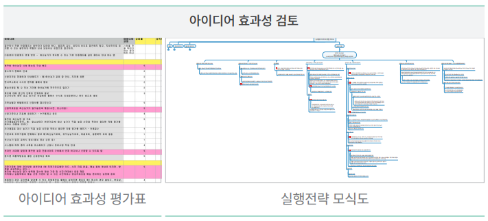ㅇ 찾아낸 해결방안에 대하여 아이디어 효과성 평가를 통하여 구체적인 실행전략을